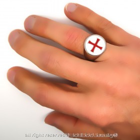 Anello anello decorato con una croce rossa patente d'oro su uno sfondo bianco, smalto, che è l'emblema dei cavalieri templari.