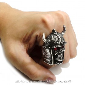 Anello teschio Celtica Casco Fantasy in Acciaio Occhi Rossi