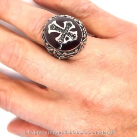 BA0157 BOBIJOO Jewelry Anello Uomo Rosso A Croce Latina, Monarchici Acciaio zoom_in