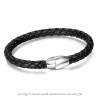 Bracciale Uomo Vera Pelle Nero Acciaio Torto