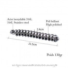Finitura e qualità esemplare per questo bracciale da biker, per uomo decorate con 14 teschi intrecciate.