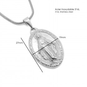 Collana Medaglione Di Maria Vergine Miracolosa Di Maria In Acciaio, Argento