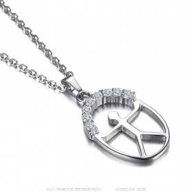 Questa magnifica collana raffigurante l'Indalo è incastonata con falsi diamanti in ossido di zirconio.