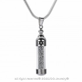 Ciondolo Mezuzah Ebraica in Acciaio Vetro Stella di David Catena