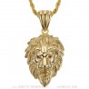 Ciondolo Testa di Leone Acciaio Oro Rubino Occhi Rossi + Catena