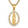 Collana con catena in acciaio e oro con ciondolo Vergine Maria con strass