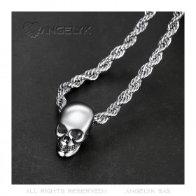 Piccolo ciondolo teschio testa di morte, anno in acciaio 316L pieno e la sua catena di 45cm di 5 mm (larghezza) per portarlo a filo con il collo e mostrare in tutte le circostanze.