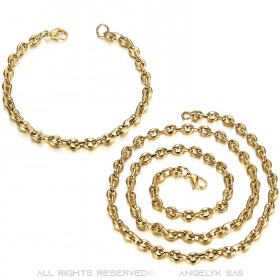 Set Catena + Bracciale Chicco di Caffè in Acciaio Oro