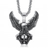 Ciondolo medaglione biker triker che rappresenta un'aquila di NOI, con le ali aperte arroccato su un motore V-Twin, sormontata da una testa di morte cranio.