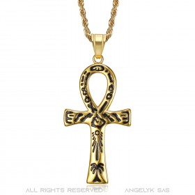 Ciondolo croce egiziana Ankh della vita in oro nero con disegni