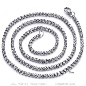 Collana a catena Mesh Roll 3mm 55cm Acciaio Argento