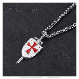 Ciondolo con spada e scudo templare Acciaio inossidabile Argento