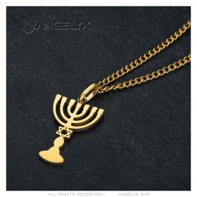 Ciondolo Menorah Candelabro 7 rami Stella di Davide Oro Acciaio