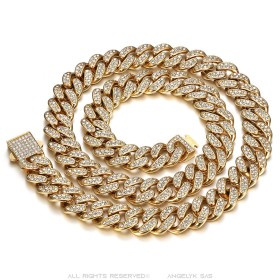 Collana maglia cubana Bing Iced Uomo Acciaio inossidabile 155gr. Oro