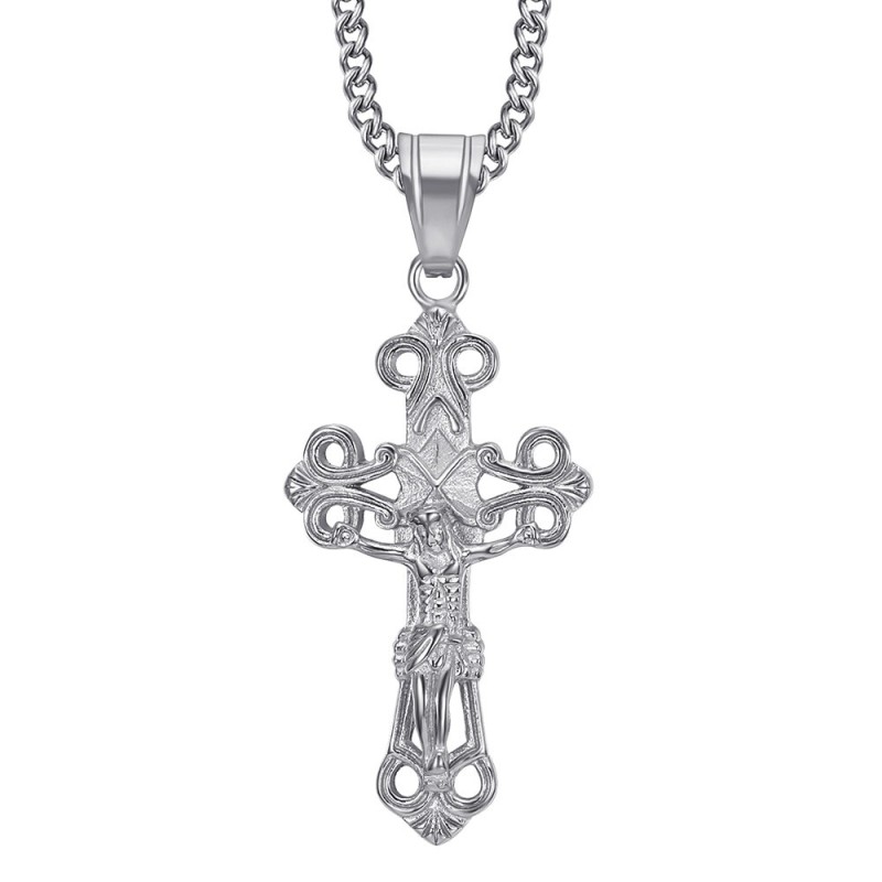 Questo ciondolo a croce in filigrana in acciaio inossidabile placcato argento coniuga eleganza e robustezza per uno stile senza tempo. Il suo design raffinato e i dettagli delicati lo rendono un gioiello unico, ideale per impreziosire tutti i tuoi outfit.