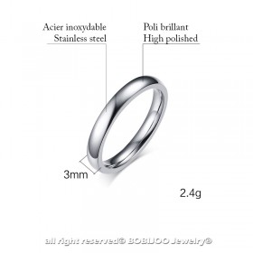 Bague Alliance Simple Mixte Acier Inoxydable Argenté 3mm