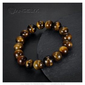 Bracelet Oeil de Tigre Véritable 12mm 3 tailles Homme Femme