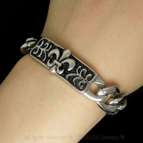 Gourmette Bracelet pour homme en acier inoxydable avec une fleur de lys.