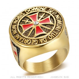 Cet anneau templier est en acier inoxydable 316L et ce modèle est entièrement doré à l'or fin (plaqué or 2 microns), les croix rouges sont émaillées.