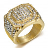 Bague homme diamant en acier inoxydable doré à l'or fin.