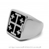 Chevalière Croix de Jérusalem pour homme en acier inoxydable, finition argentée et noire. Symbole de foi, tradition et héritage chrétien.