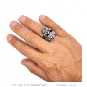 Bague tête de mort mexicaine Acier Argent Yeux noirs