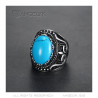 Bague chevalière biker en acier inoxydable de qualité surmontée d'une turquoise griffée de forme ovale.