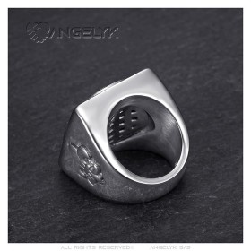 Bague Napoléon 1er carrée Acier inoxydable Argent 4 Diamants