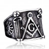 Bague Chevalière Masonic Franc Maçon Equerre Compas Soleil Acier Inoxydable