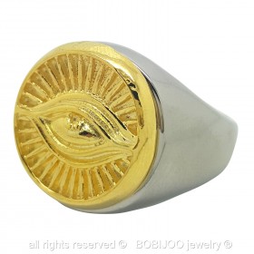 Bague Chevalière Illuminati Oeil Doré et Argenté