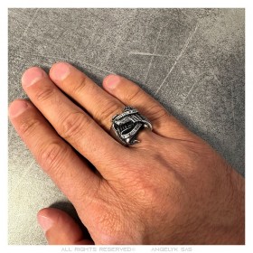 Bague biker pour homme avec un aigle et l'inscription Live to Ride Ride to Live au style Harley Davidson.