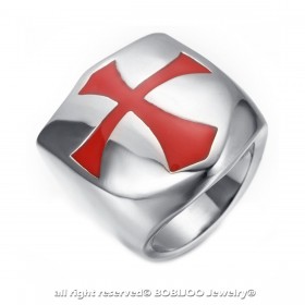 • Chevalière Bague Bouclier Templier Croix Rouge Acier Inoxydable bobijoo
