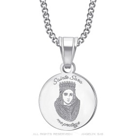 Médaille ronde Baptême Sainte Sara me protège Acier Argent