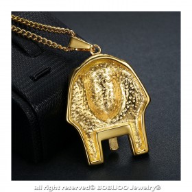 Pendentif Tête de Pharaon Egypte Ancienne Acier Or + Chaîne