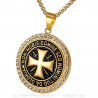Pendentif collier symbolique orné de la devise du chevalier templier entourant une sublime croix pattée or avec 2 épées.