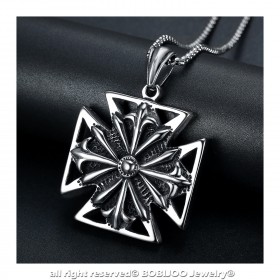 La croix pattée mesure 47mm de côté. Son poids est de 68gr (chaîne incluse).