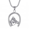 Pendentif pour homme en forme de fer à cheval entourant une tête de cheval.