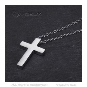 Collier croix sans Christ Acier Inoxydable plein Argenté 32mm Minimaliste