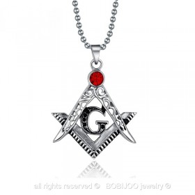 Pendentif Collier Franc Maçon Acier Faux Rubis Rouge