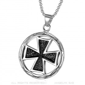 Un joli pendentif argenté représentant une croix pattée noire de chevalier templier.