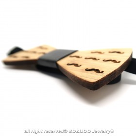 En bois naturel, ce noeud papillon forme classique est décoré de plusieurs moustaches. Elles ont été minutieusement sculptées dans le bois avec un rendu suprenant et très réussi.